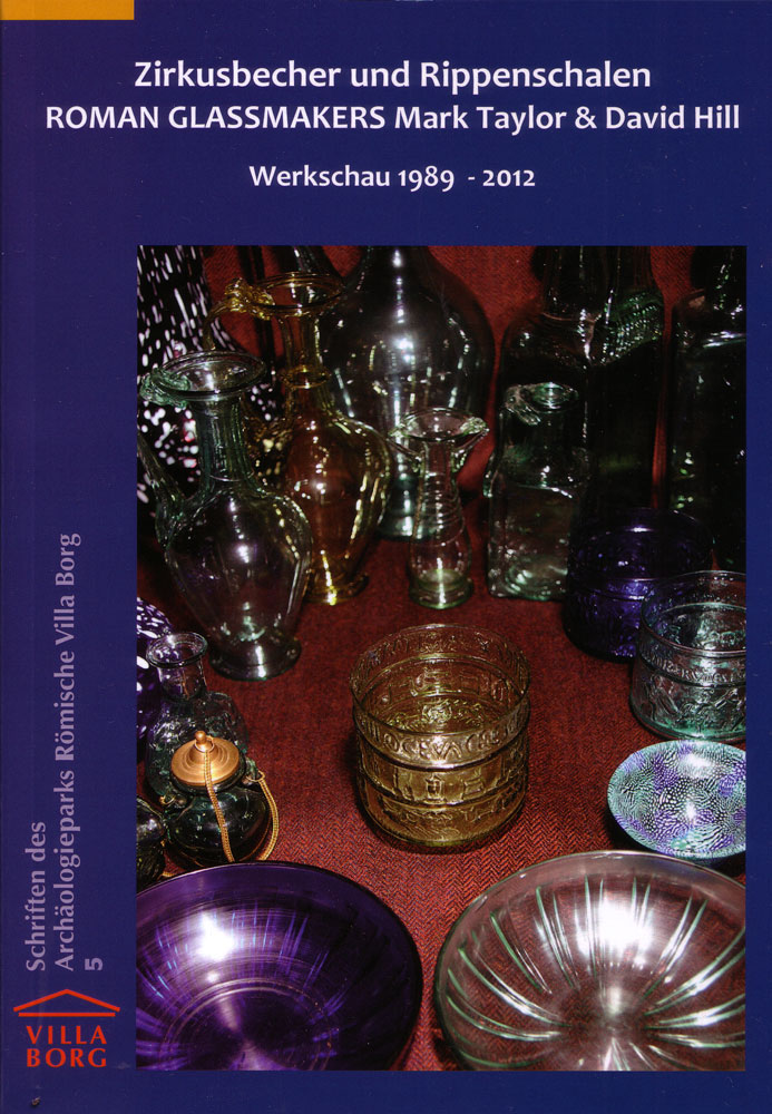 Anläßlich der Sonderausstellung "ZIRKUSBECHER UND RIPPENSCHALEN - Werkausstellung ROMAN GLASSMAKERS Mark Taylor & David Hill" im Archäologiepark Römische Villa Borg ist ein Katalog erschienen, der auf 192 Seiten viele Informationen rund um die ROMAN GLASSMAKERS und ihre Gläser beinhaltet. Eine Chronik ihres Schaffens, reich bebilderte Informationen zum frei oder formgeblasenen sowie geformten Glas, zu den römischen Glasofenprojekten in England und Belgien, aber auch zu über ihr römisches Sortiment hinausgehende Sonderanfertigungen und letztendlich der Abdruck ihres "Werkkataloges" bieten wertvolle Informationen nicht nur für Sammler und Liebhaber! Darüber hinaus stellt der Ausstellungskatalog auch einige Glasfragmente der Villa Borg vor.