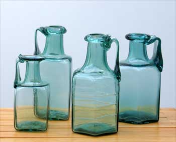 Mittlerweile können wir auch einige selbst an verschiedenen rekonstruierten römischen Glasöfen gefertigte Glasgefäße anbieten: